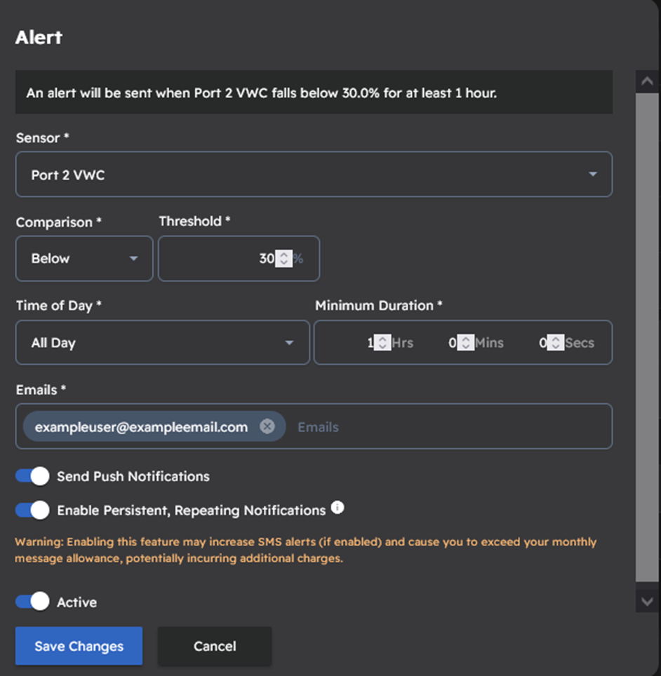 - Users can also enable persistent alerts on sensor alerts by activating the ‘Enable Persistent, Repeating Notifications’ toggle within the sensor alert form: