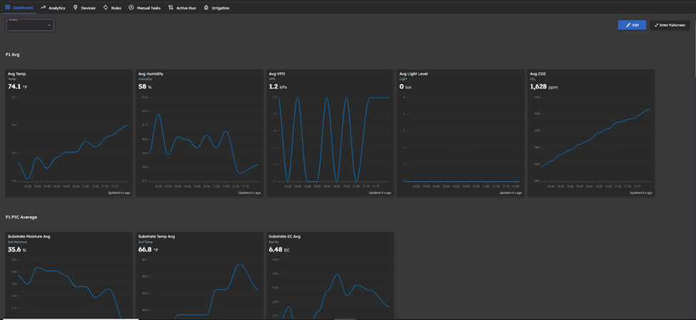 However, one can create a Custom dashboard by clicking the presets drop-down in the top-left and clicking ‘Add New Preset’, then giving the Preset a name. This creates a blank space where one can then add desired Sensors, Devices, Manual tasks, and applicable headers to create a custom dashboard that fits your use case and needs: