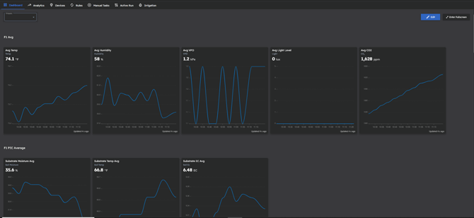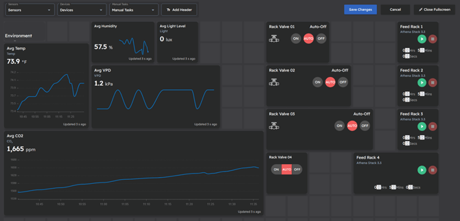 All sensor data charts, devices, manual tasks, and headers are able to be moved around the dashboard by clicking the top border and dragging the object to the desired location.