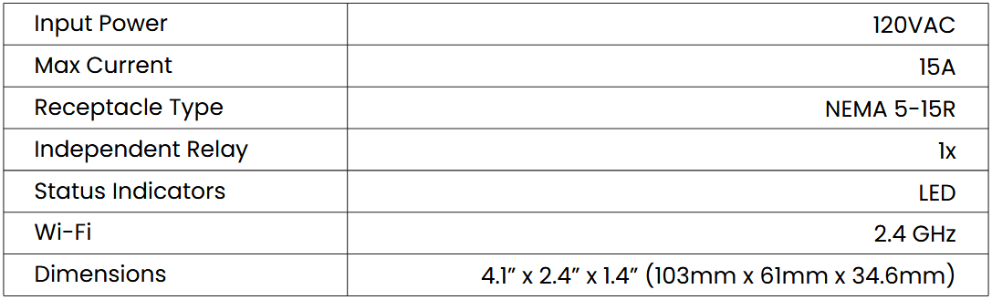 - Independent Outlet Control: Manage a single 120VAC, 15-amp device with precision.
